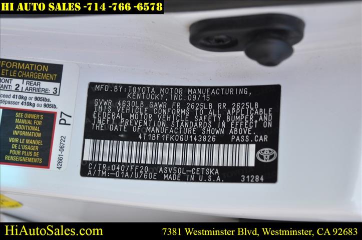 2016 TOYTA CAMRY SE 2.5 L SPORT ** **BLUETOOTH ** POWER SEAT *** WELL MAINTAINED AND KEPT LOOKING LIKE NEW! A MUST SEE!! CAN'T PASS THIS UP! LOADED WITH TOO MANY EXTRAS TO LIST! COME IN TODAY AND CHECK IT OUT BEFORE IT'S GONE!! HURRY WON'T LAST!! PRICED TO SELL!! PRICES ARE SUBJECT TO CHANGE WITHOUT NOTICE, PLEASE CALL US TO VERIFY @ WWW.HIAUTOSALE.COM THANK YOU FOR CHOOSING HI AUTO SALES AND WE HOPE TO HEAR FROM YOU SOON !!!!